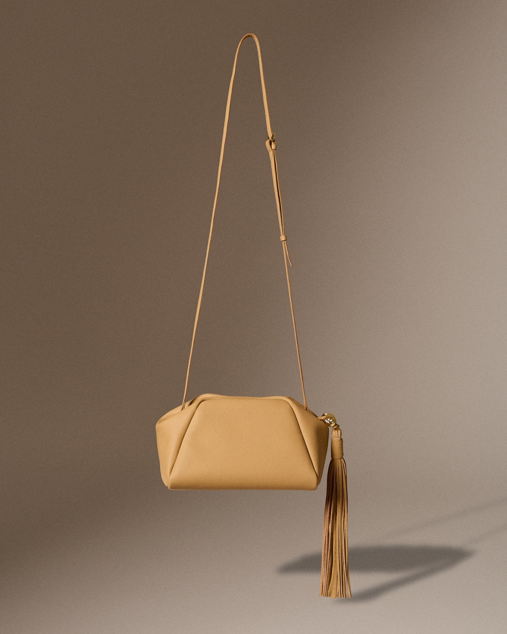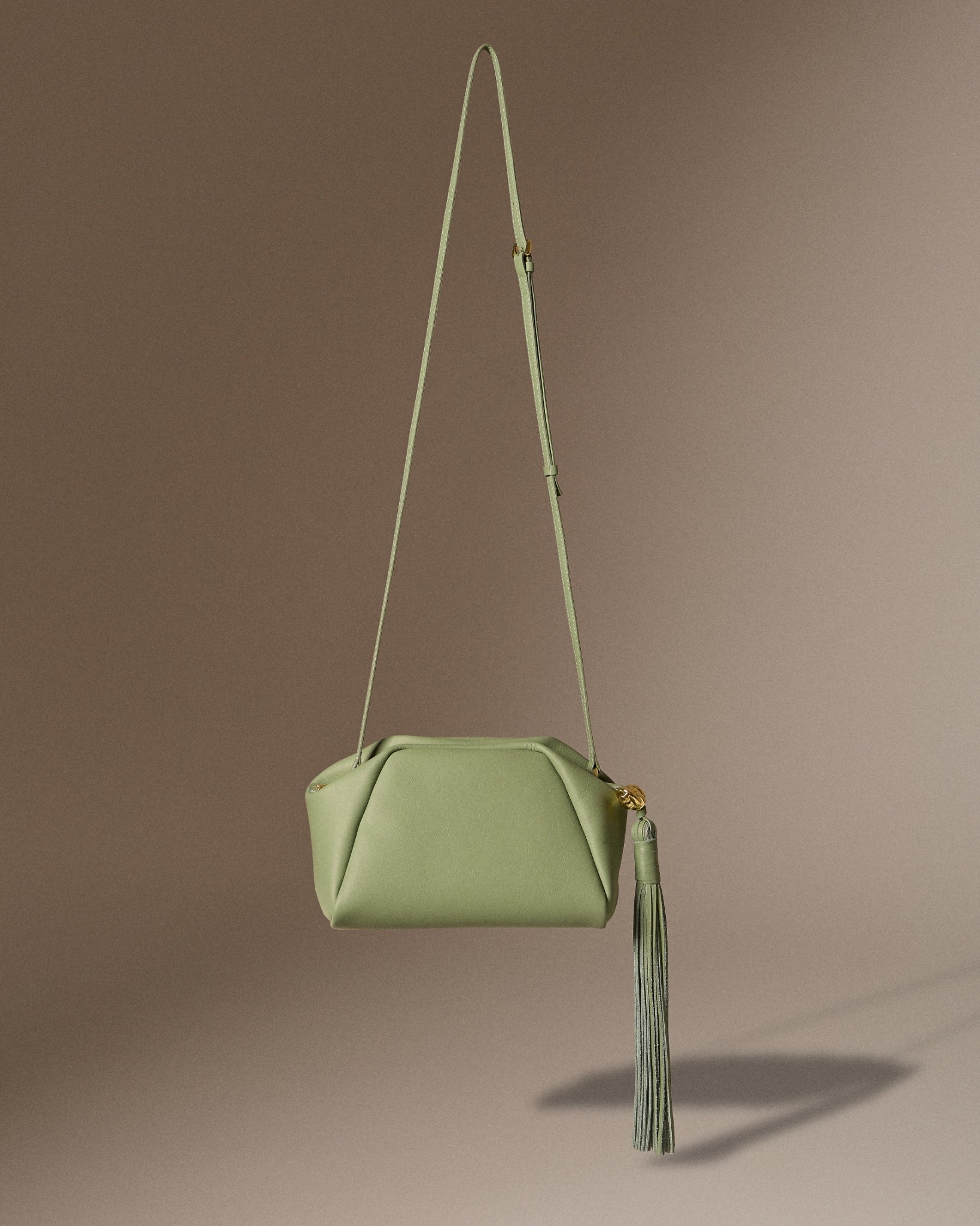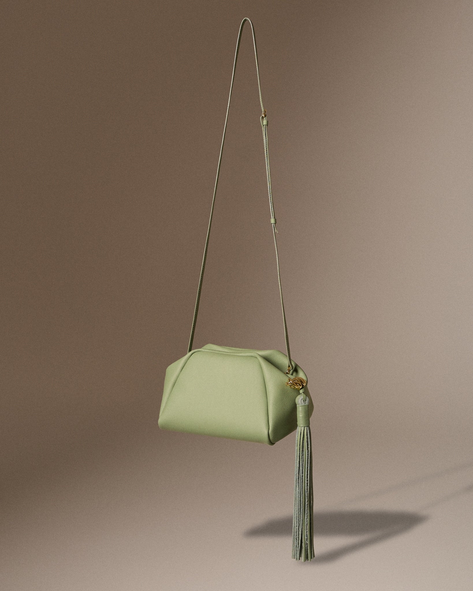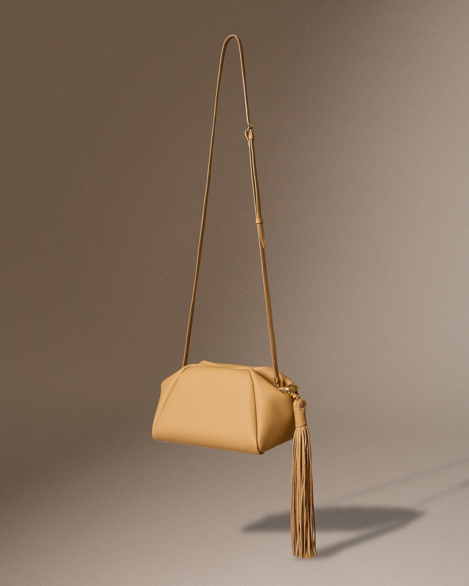 A new shape is introduced in this collection: Bibi, a clutch with long leather fringe—one of the free-spirited elements of the bag. The fringe zipper is adorned with shelly gold hardware, which is originally inspired by shells and twisted into a rope knot shape. Bibi comes in a special limited edition of net pearl fur white, using headman pearl net, as well as in leather versions: Butter Yellow, Olive Green, Shelly Straw Black, Shelly Straw Tan, and Ovaltine Canvas.