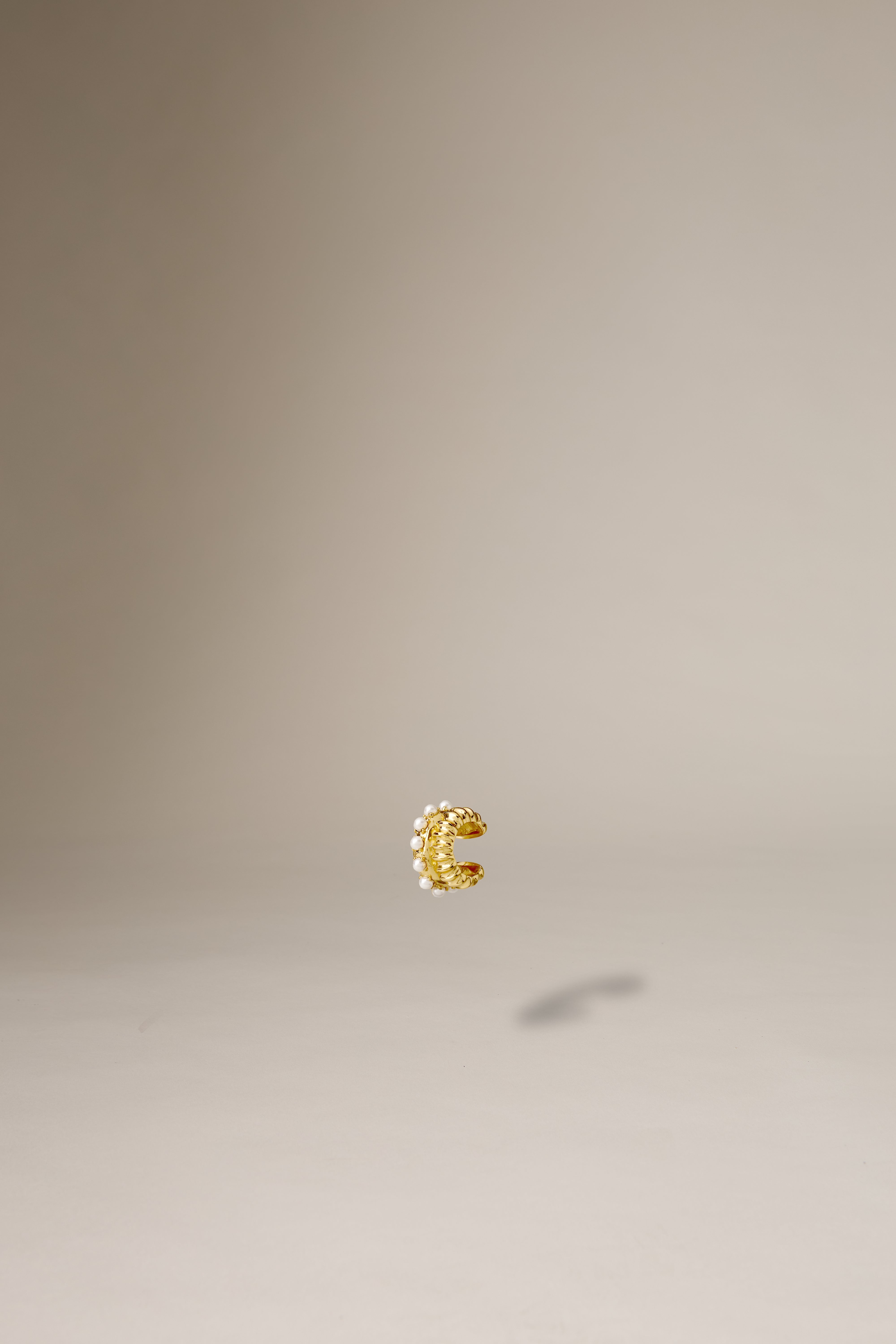 Chato Studio's earrings are meticulously hand-hammered using the house's craftsmen secret technique to achieve a stippled finish. They're cast from gold brass and set with an exquisite collection of rose cut crystal for a magnificent sparkle with pearls.