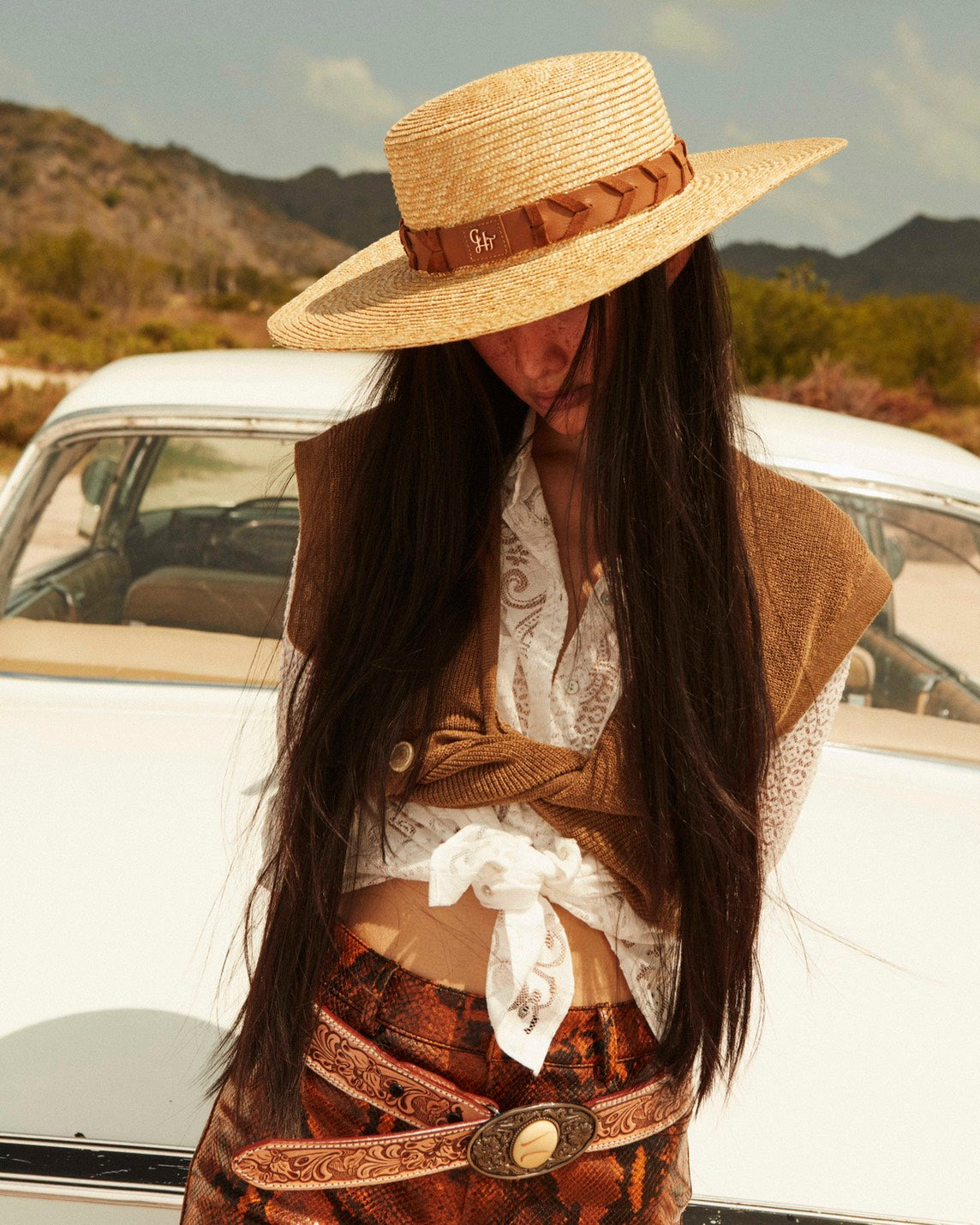 Perfect for coastal vacations or a day at the races, Chato's 'Joshua' summer hat is women from natural straw in a face-shielding wide-brimmed silhouette. It's trimmed with a signature logo and leather straw that flutters down the back and works equally well with a swimsuit or breezy summer dress.