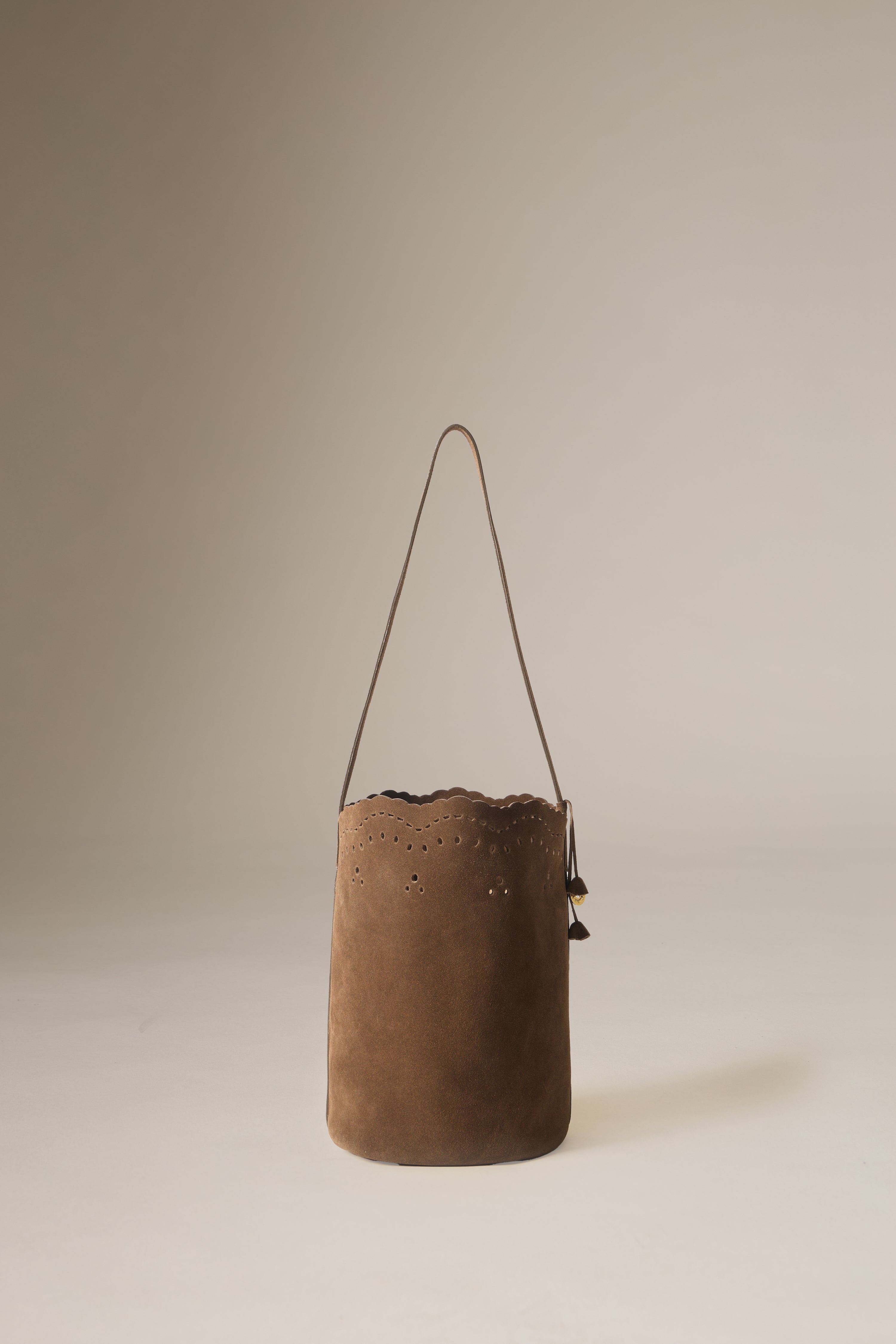 MARIA SUEDE BUCKET BAG - M - DARK CHOC