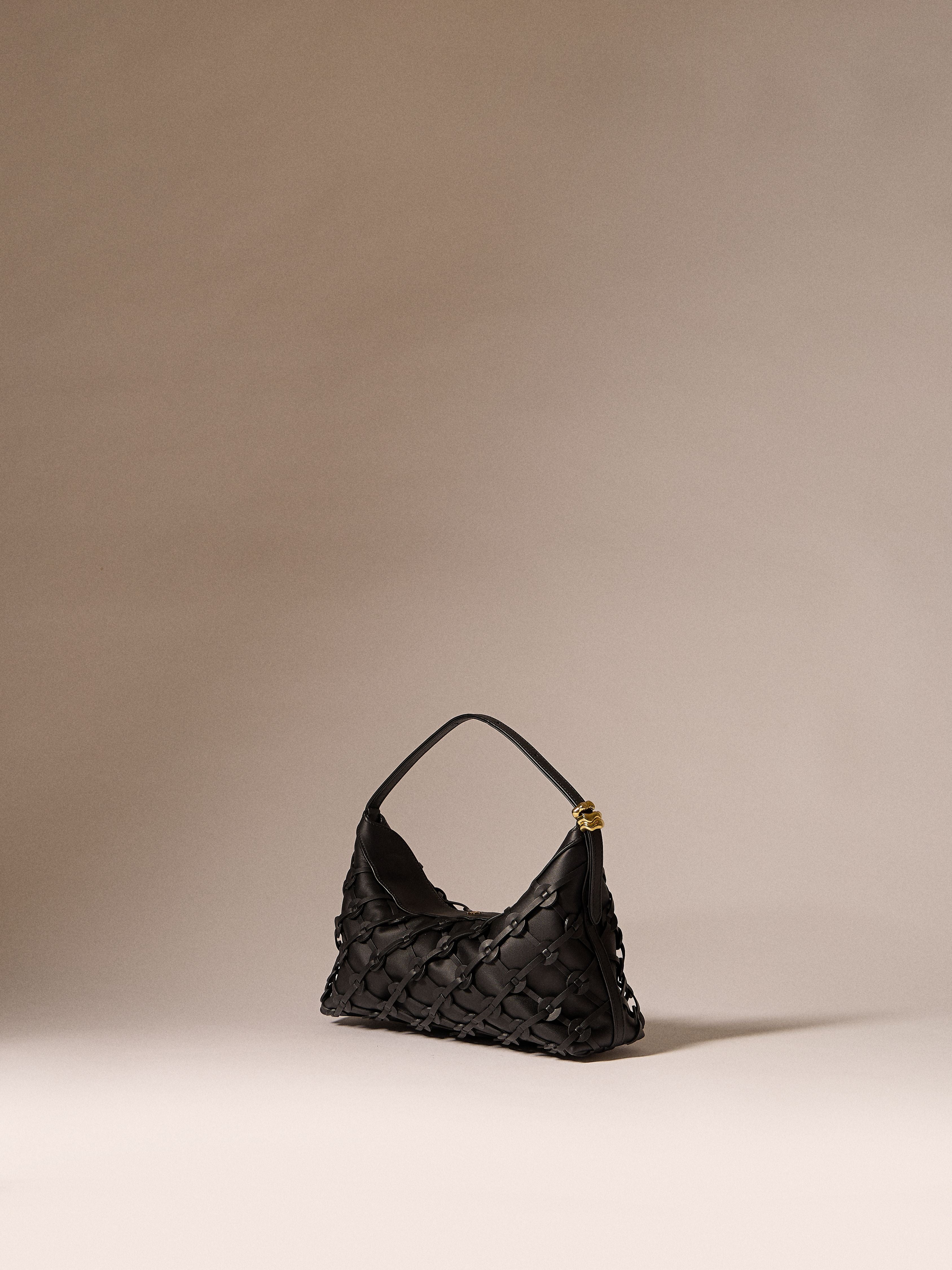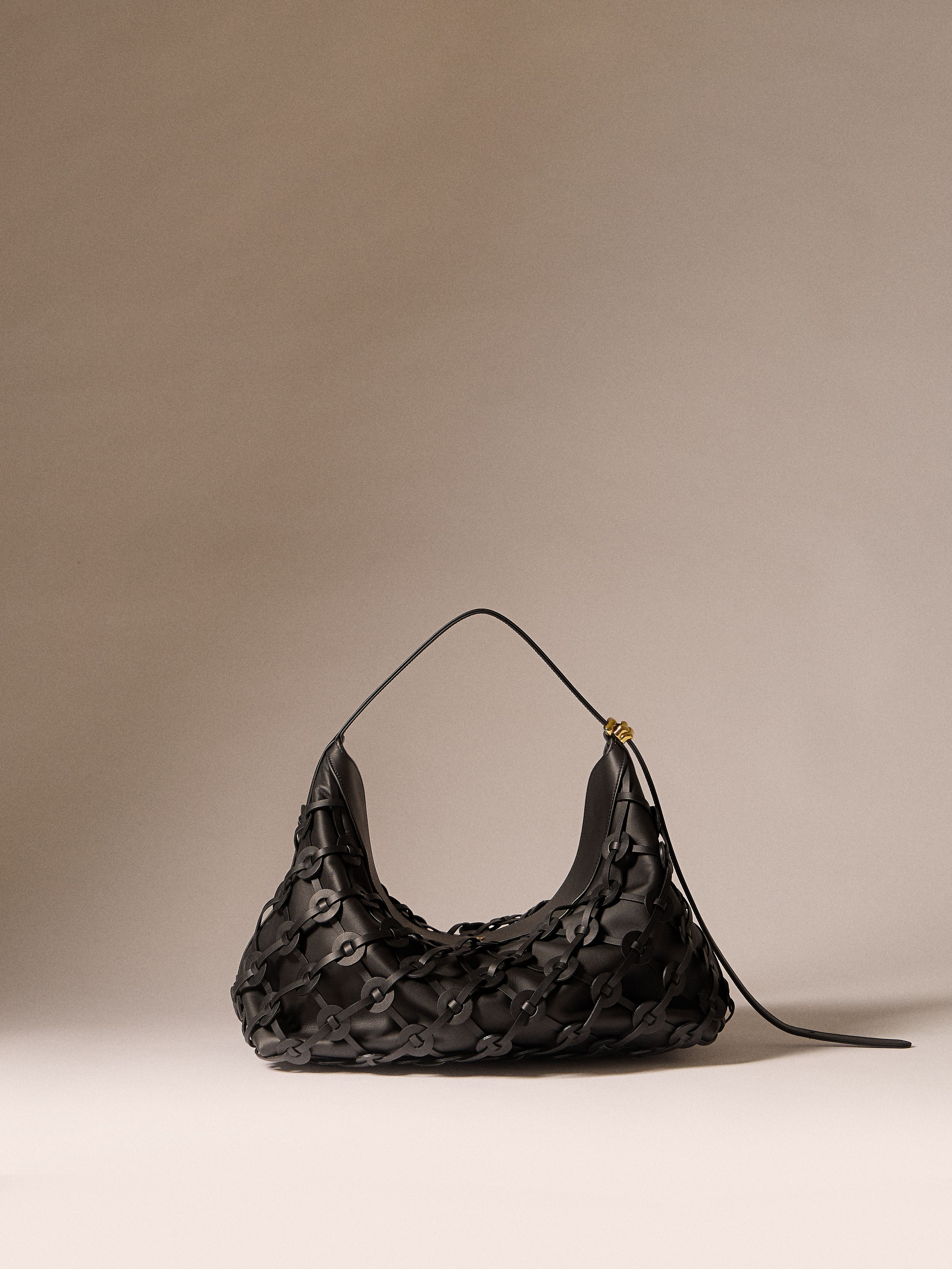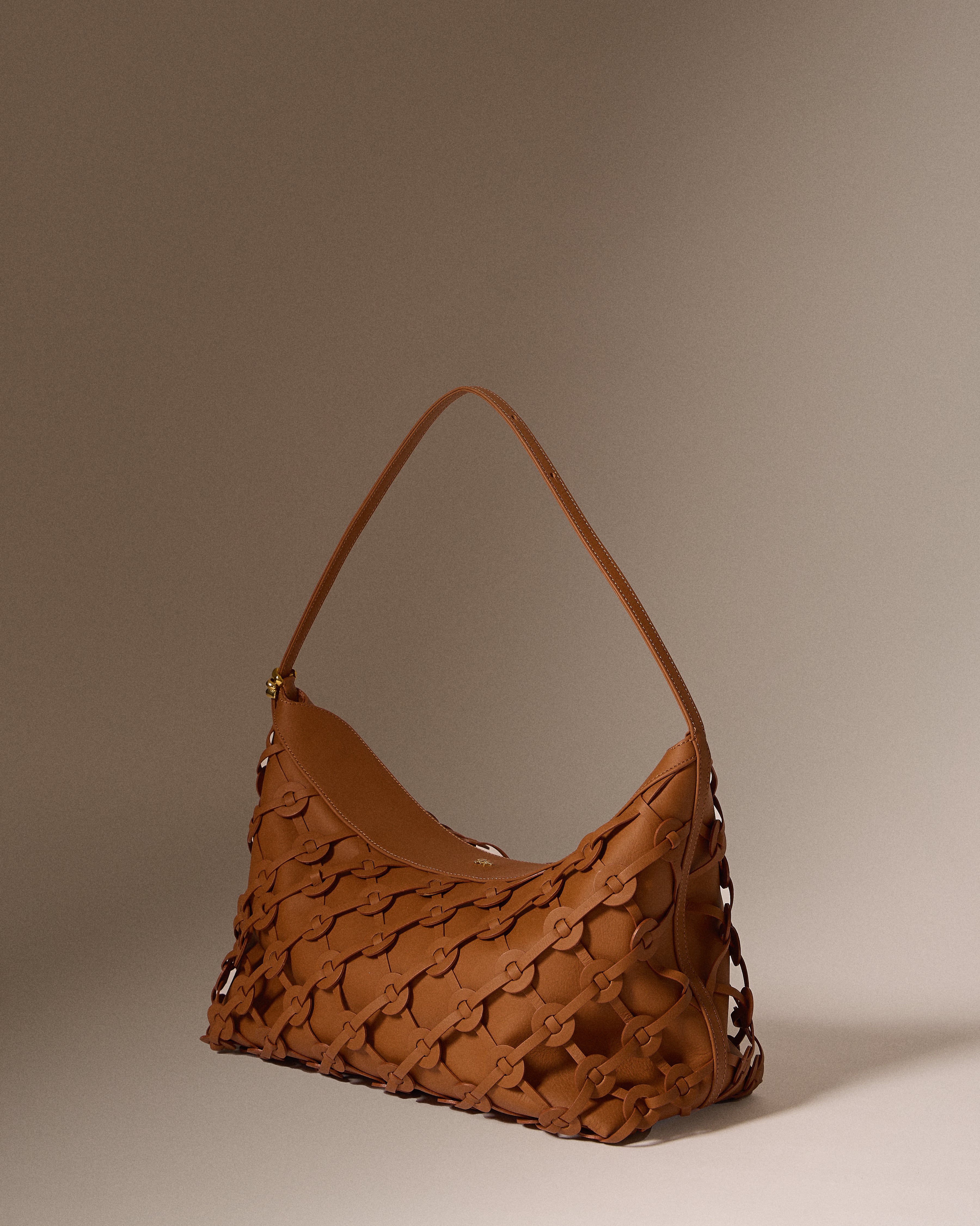Developed from the original classic shape of the house, the "Chato Coco". This version is designed to be simpler and more practical. The special gold hardware draws inspiration from Chato’s signature jewelry, the Dancing Ring. Additionally, the shelly straw technique has been incorporated into the Paris Bag.
