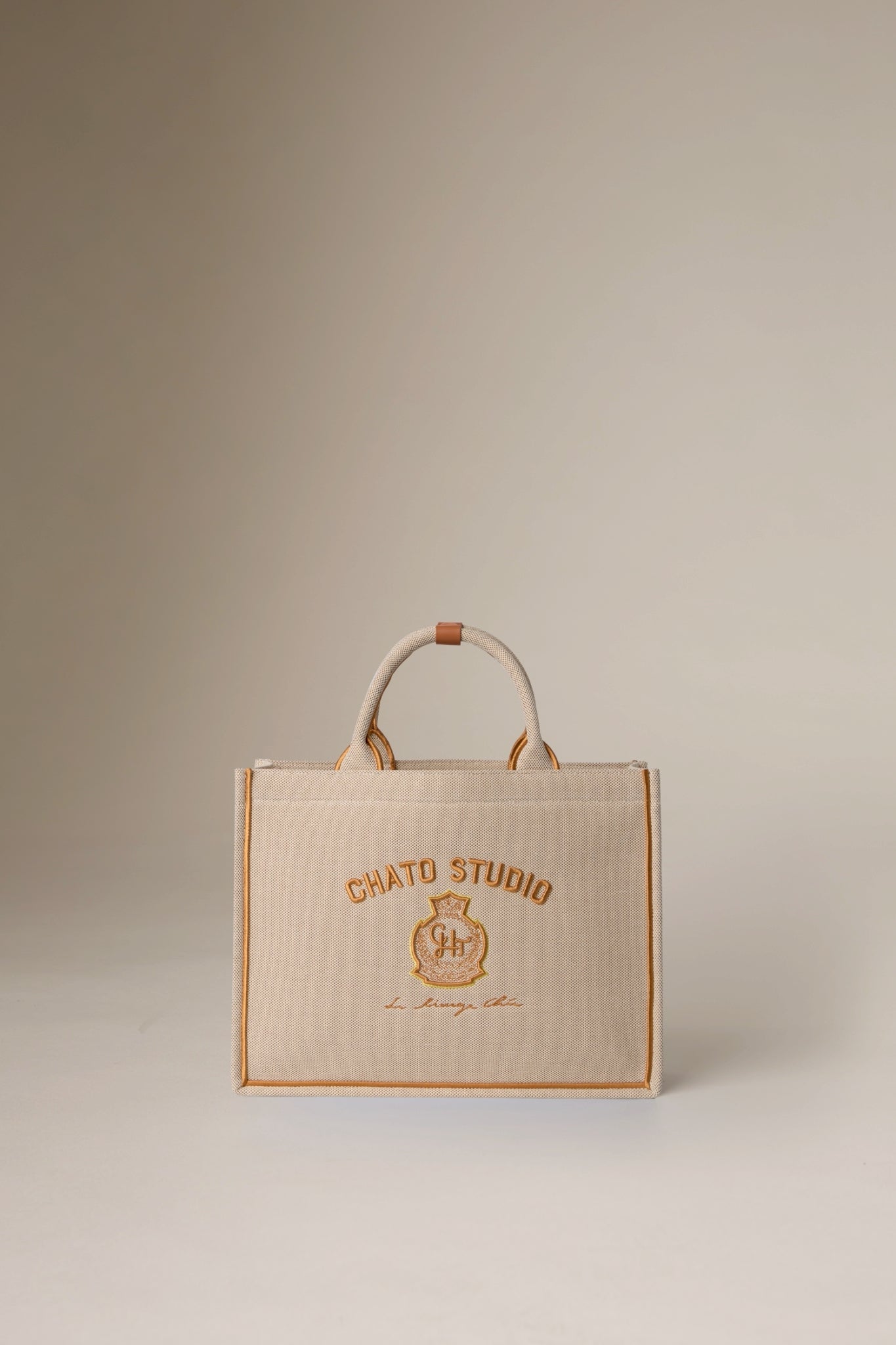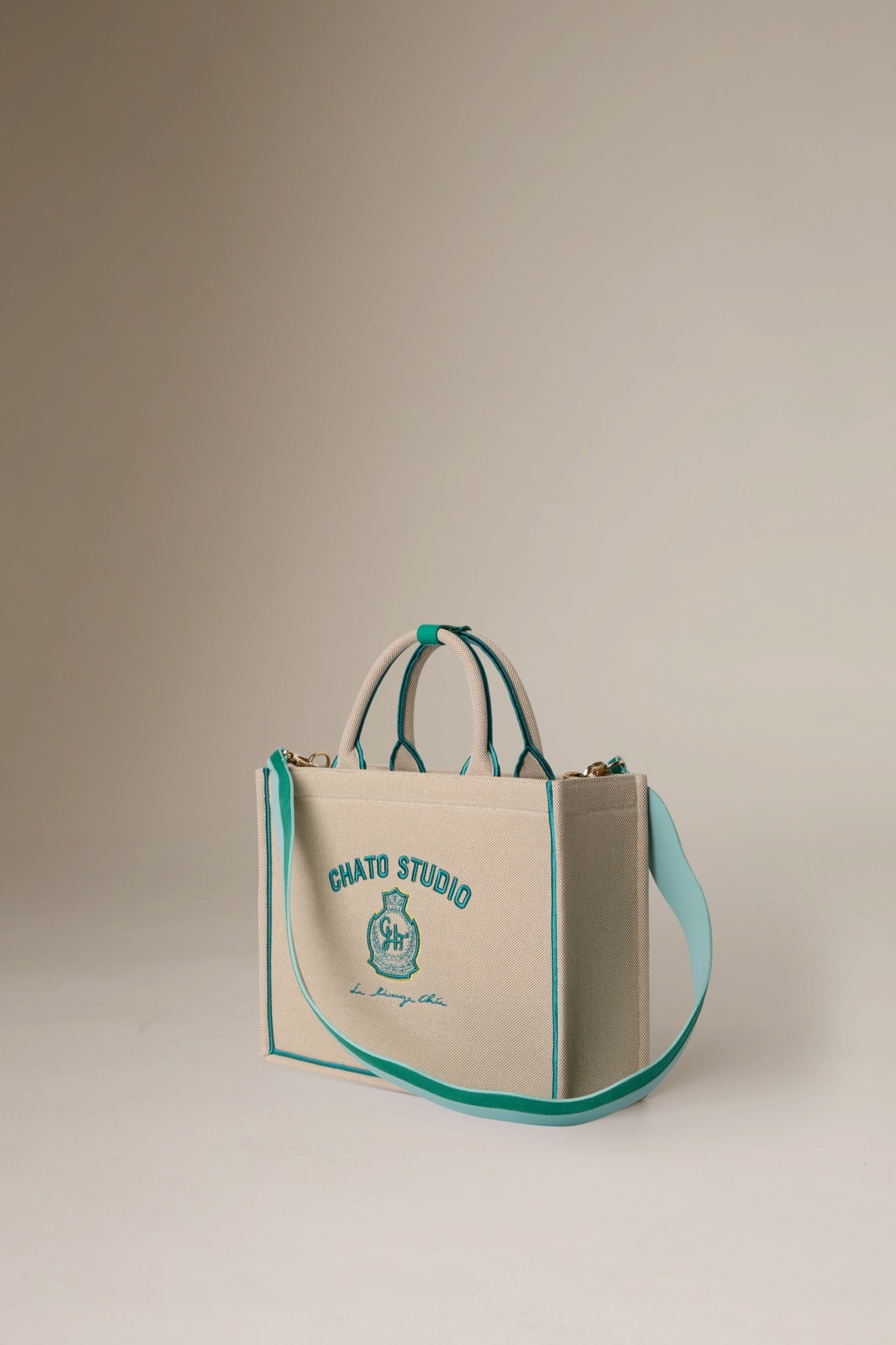 Chato Studio’s designs are loved because of how elegant and beautifully crafted they are - the same qualities that make this Chato Studio 'Palm Springs' tote so covetable. Made from structured canvas, it's trimmed with a cutout navy leather and has a pouch inside to keep your valuables safe.